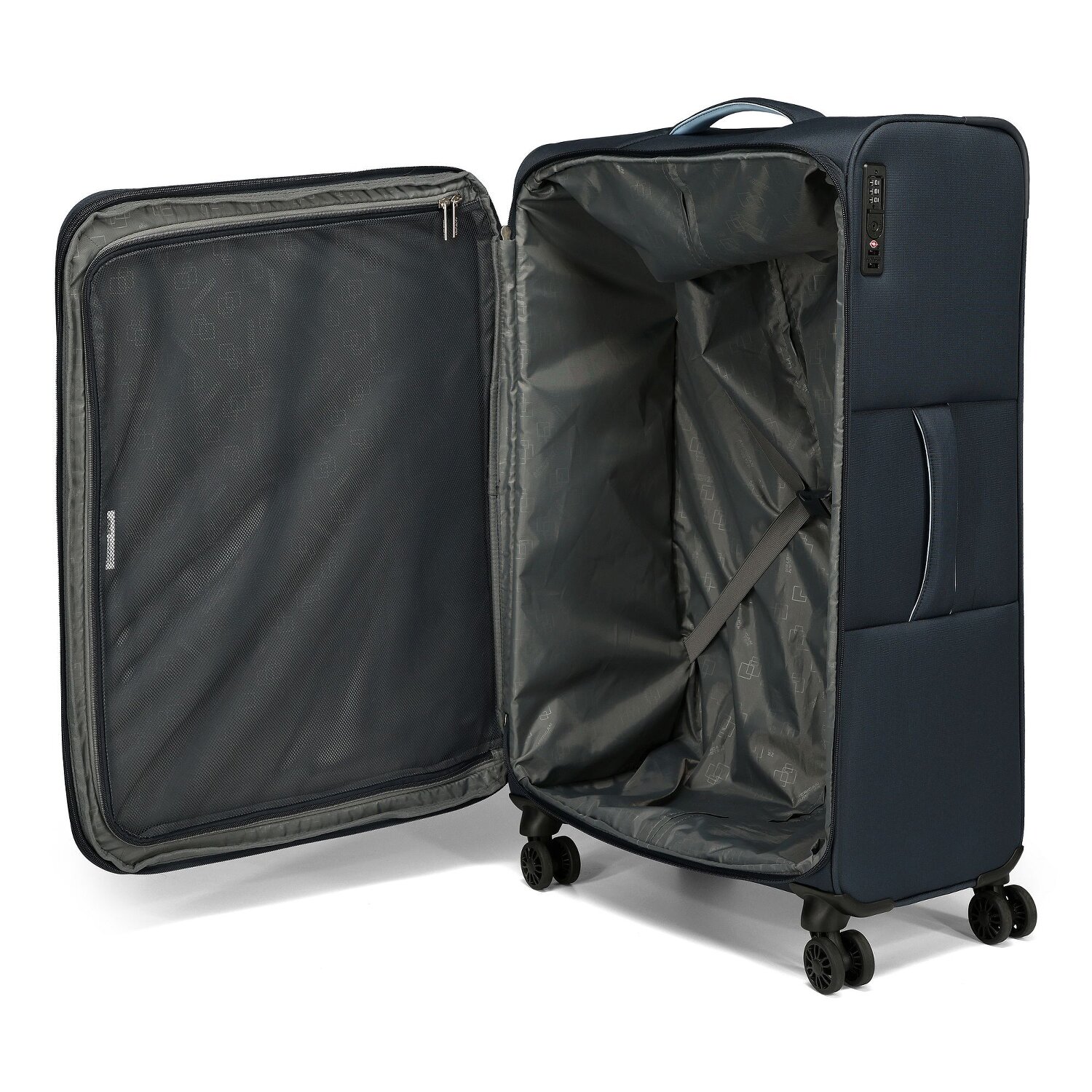- Equipaggiamento: Tasca esterna, Scomparto in rete con cerniera, Manico telescopico, Interni cinghie elastiche, Espandibile