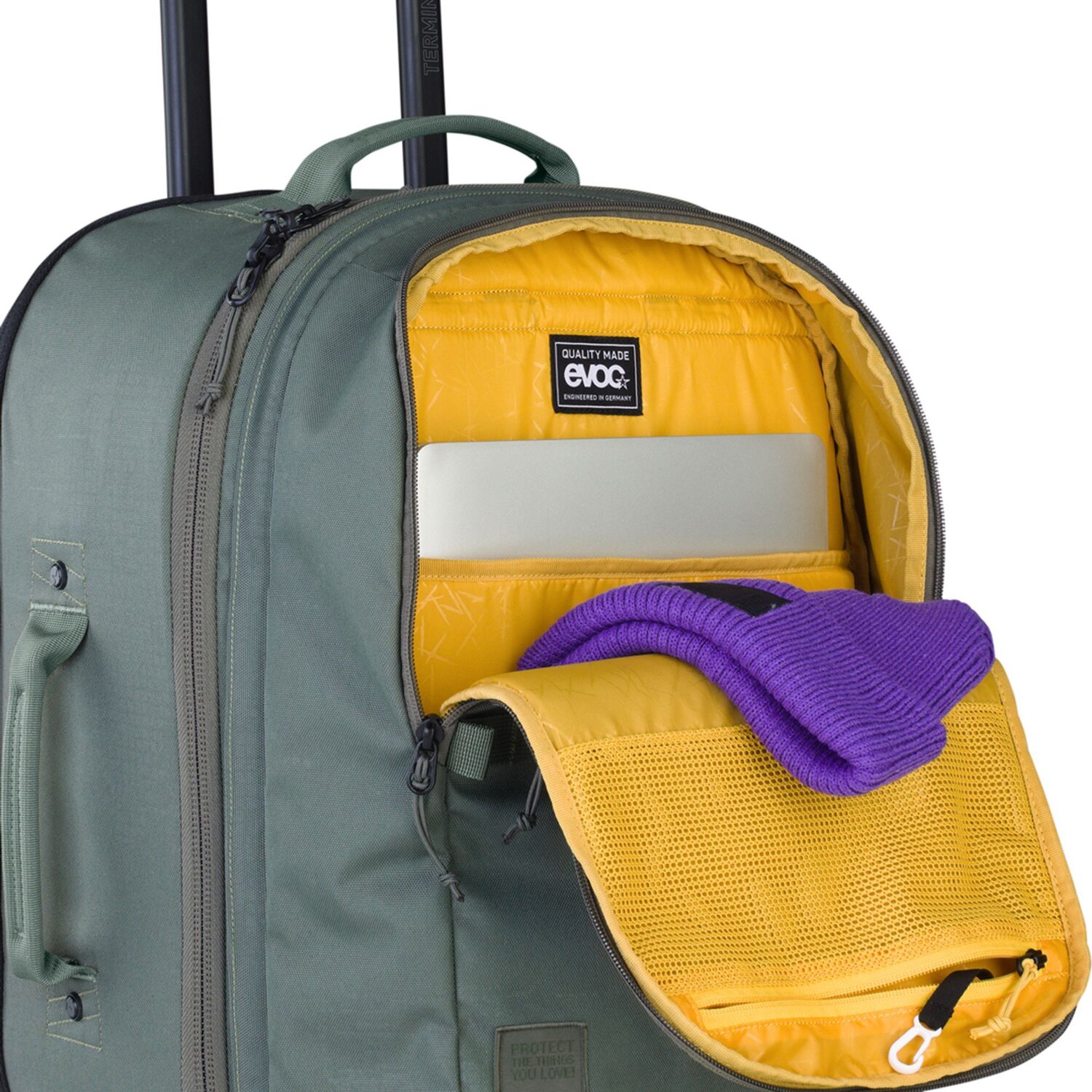 - Equipaggiamento: Scomparto abiti, Manico telescopico, Interni cinghie elastiche, Borsa rimovibile