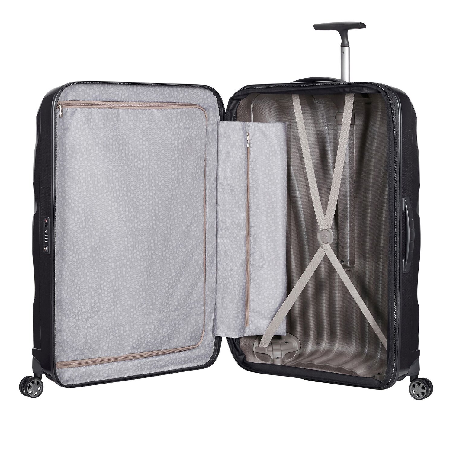 - Equipaggiamento: Scomparto con cerniera, Scomparto abiti, Manico telescopico, Interni cinghie elastiche