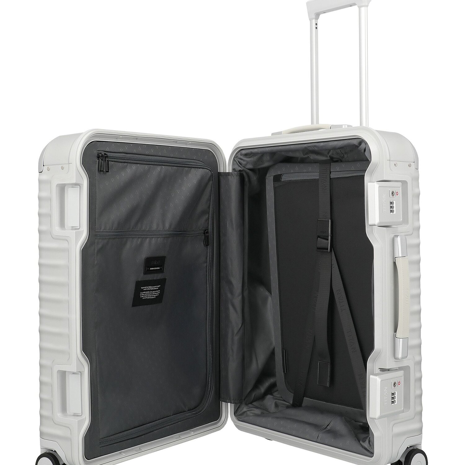 - Equipaggiamento: Scomparto con cerniera, Scomparto abiti, Manico telescopico, Interni cinghie elastiche, Divisorio interno