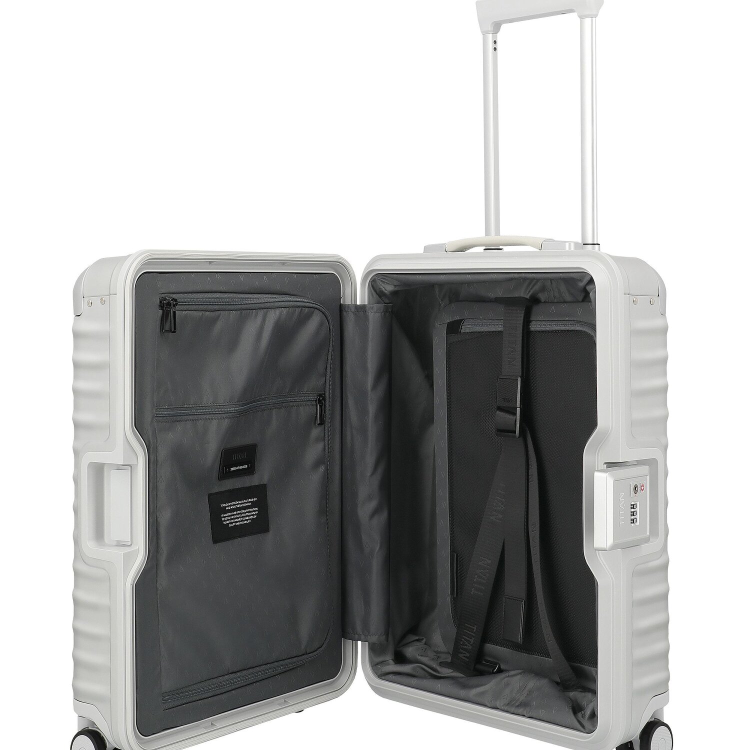 - Equipaggiamento: Scomparto abiti, Manico telescopico, Interni cinghie elastiche, Divisorio interno
